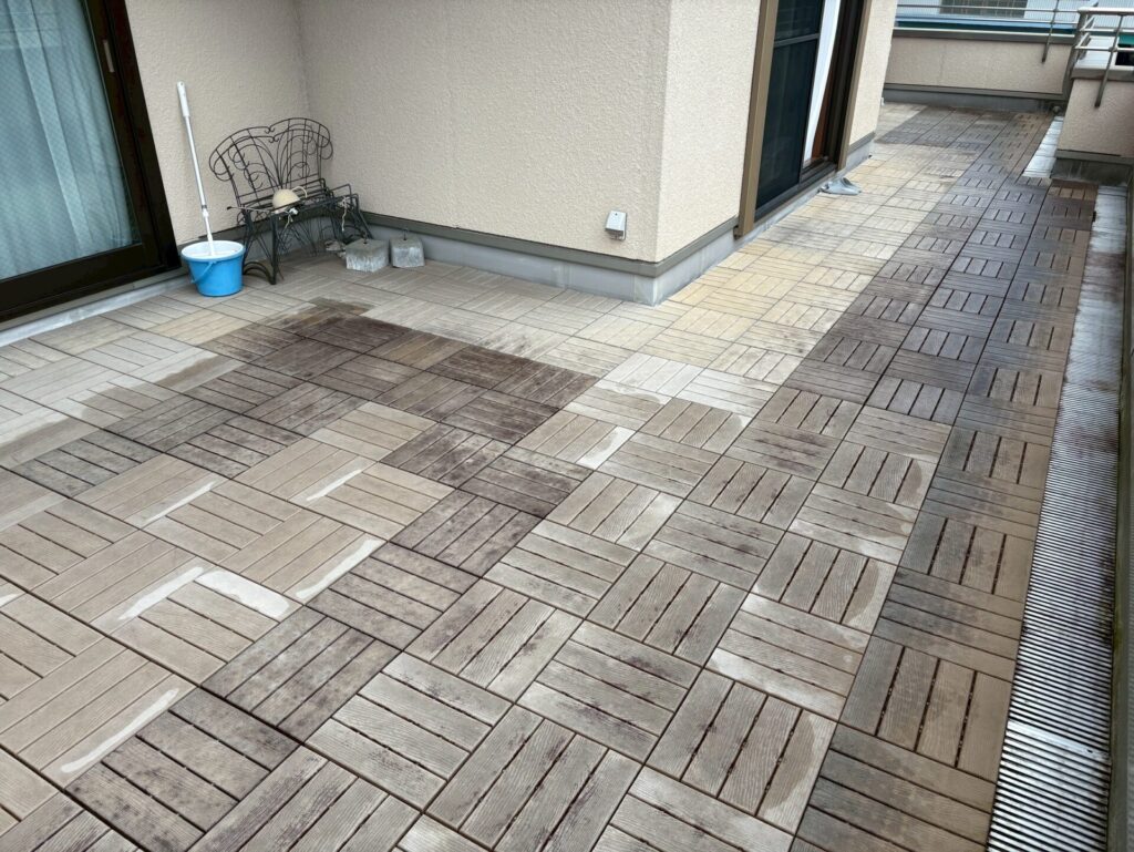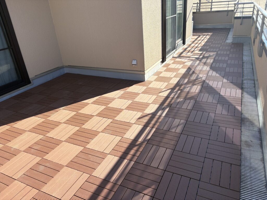 外壁は艶消、無機の塗料で長持ちも出来てベランダ床材も雰囲気が変わりステキな出来上がりで喜んで頂けて良かったです😊