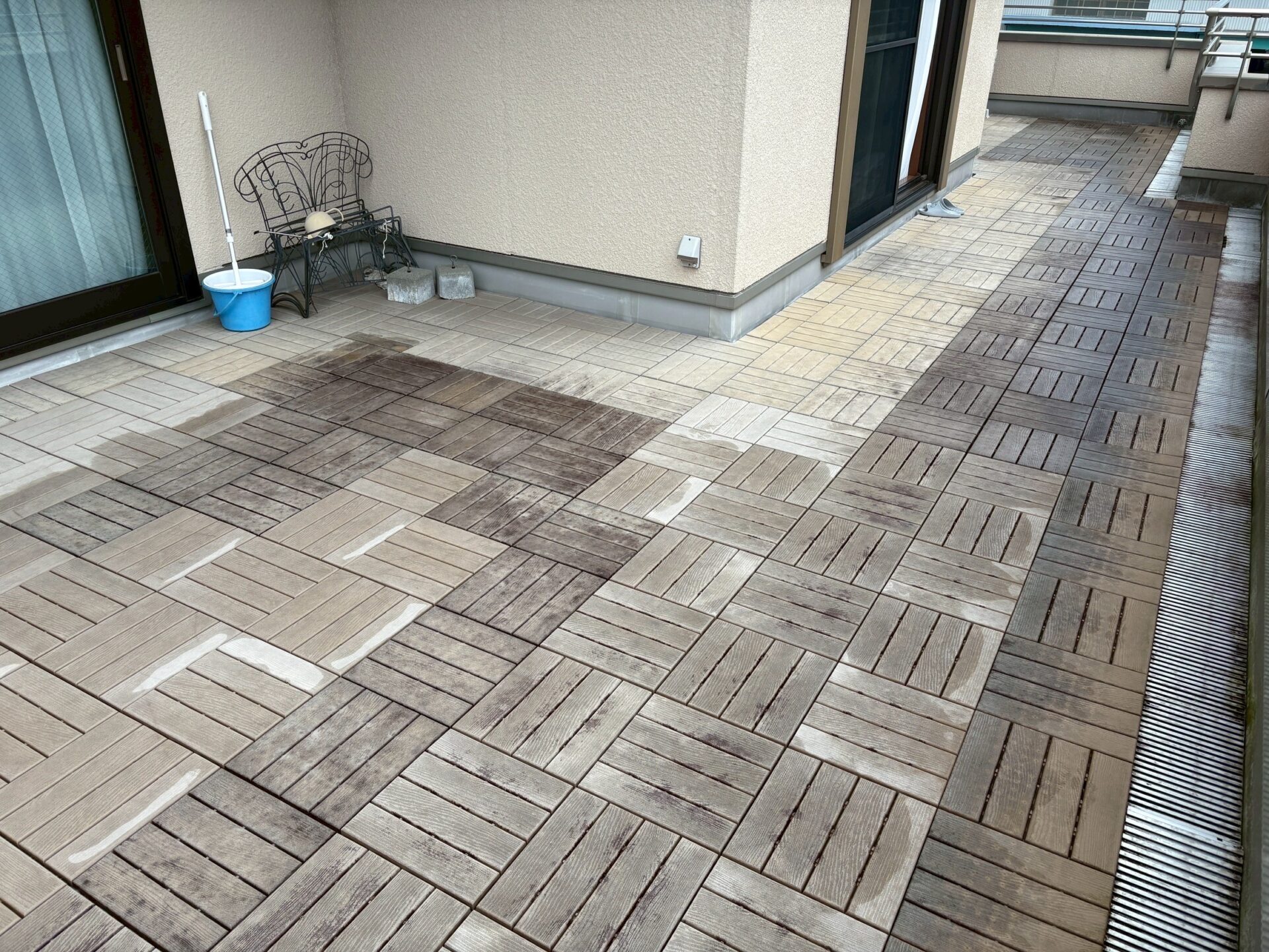 外壁塗装、ベランダ防水、窓のビート交換、ベランダ床材の交換含めて、工事に入らせていただきました。